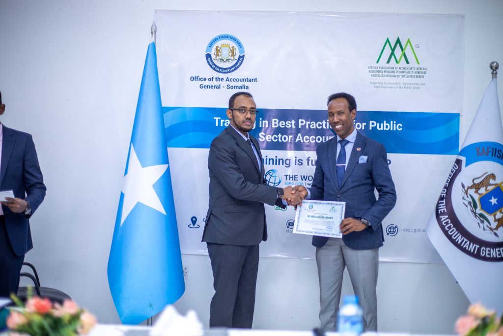 Xafiiska Xisaabiyaha Guud ee Dowladda Federaalka iyo Xiriirka Xisaabiyeyaasha Guud ee Afrika (AAAG) ayaa si wadajir ah u soo qabanqaabiyay tababar heer caalami ah oo ku saabsan “Best Practice in Project Accounting for the Public Sector.” Tababarka waxaa si rasmi ah u furay Xisaabiyaha Guud, waxaana ka qeyb galay Xisaabiyaha Guud ee Gobolka Banaadir, isuduweyaasha mashaariicda, lataliyeyaasha, iyo howl-wadeenada Xafiiska Xisaabiyaha Guud.
